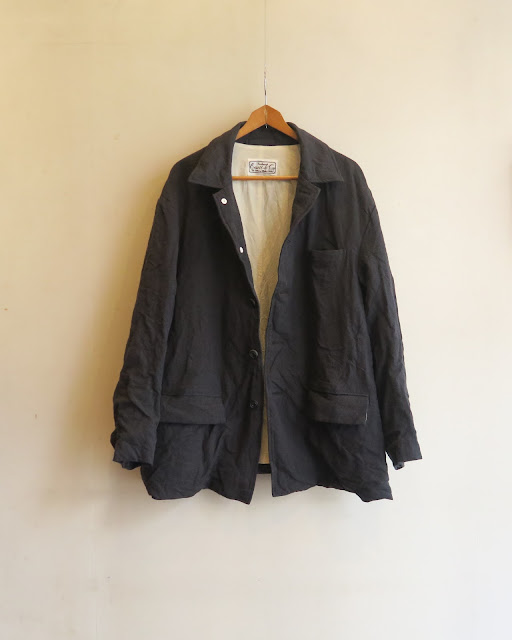新作のジャケットは製品洗い(手洗い!)を経て、天日干しによる自然なシワ感のある風合いはクラシカルなウールリネンの素材を際立たせています。毛羽立ちの少ない、綺麗で味わい深い素材はストレスの無い着用感を感じていただけると思います。